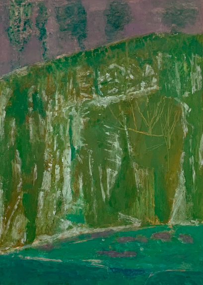 Der Hang, grün: Öl auf Papier 44 x 31 2025