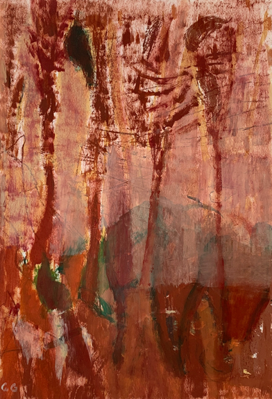 Der Hang, rot: Öl auf Papier 31 x 44 2025
